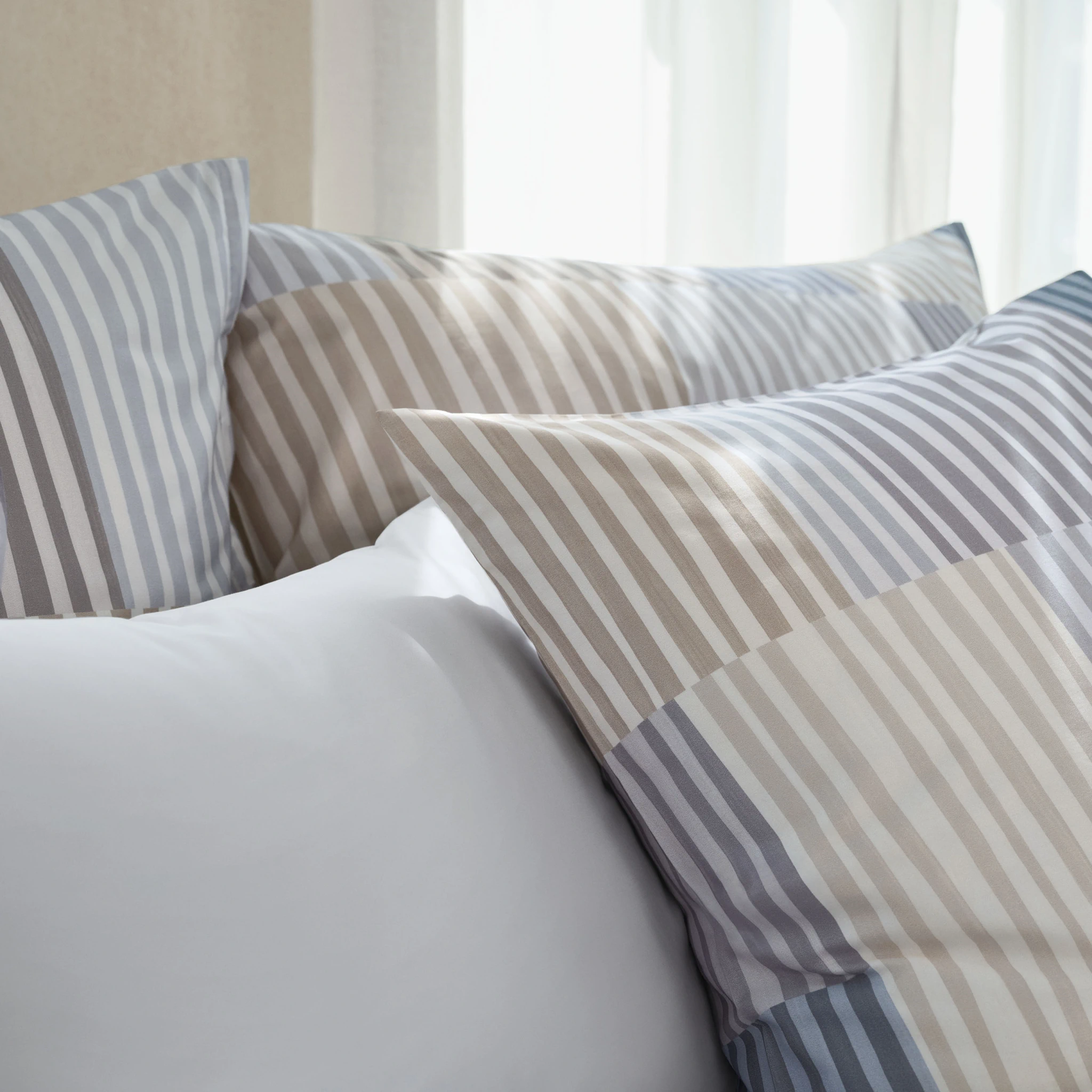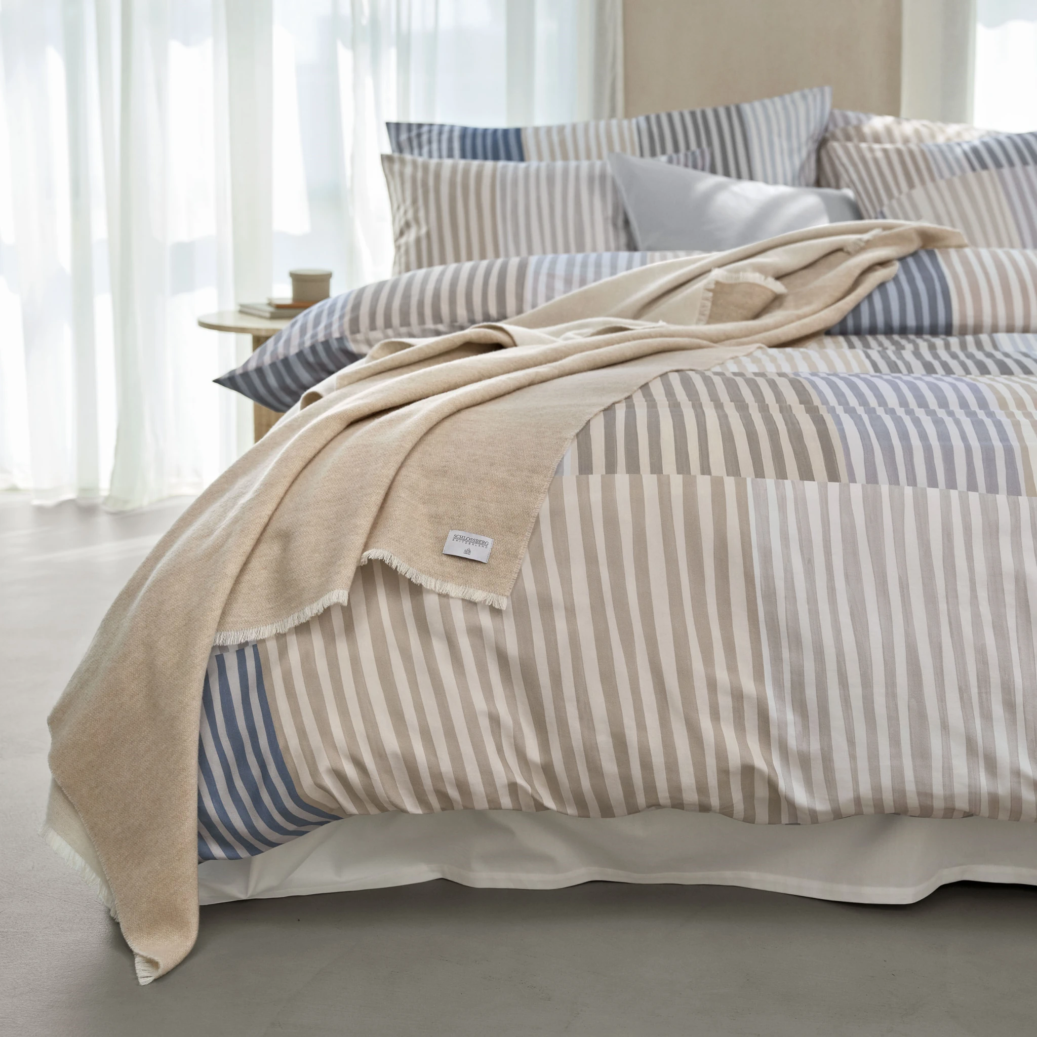 Die Schlossberg Bettwäsche MELVIN interpretiert klassische Streifen auf moderne, künstlerische Weise neu. Mit breiten Pinselstrichen und in intensiven Gouachefarben entstehen unregelmäßige Streifen, die sich zu großzügigen Flächen verbinden und einen ganz eigenen Rhythmus entwickeln. Helle und dunkle Partien wechseln sich kontrastreich ab und ergeben je nach Farbkomposition entweder ein harmonisches, hell-beiges Gesamtbild oder ein lebendiges, mehrfarbiges Ensemble. Dieses dynamische Design verleiht Ihrem Schlafzimmer eine moderne und ausdrucksstarke Note.