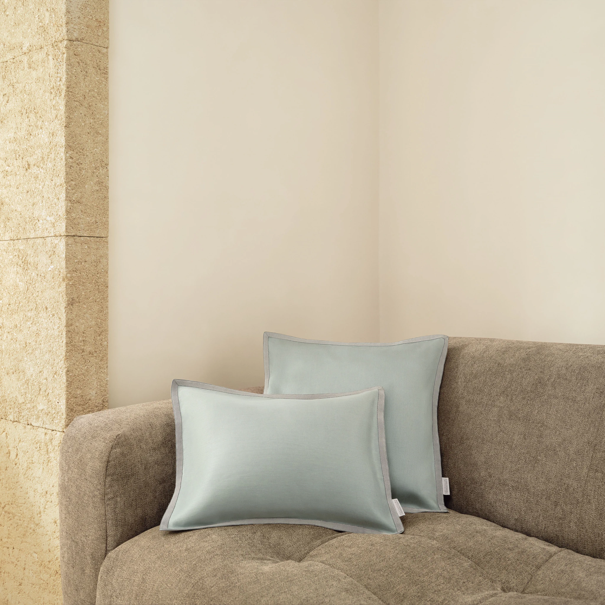 Die Schlossberg Dekokissen Solene bringen eine wärmende Frische und Eleganz in jedes Zuhause.