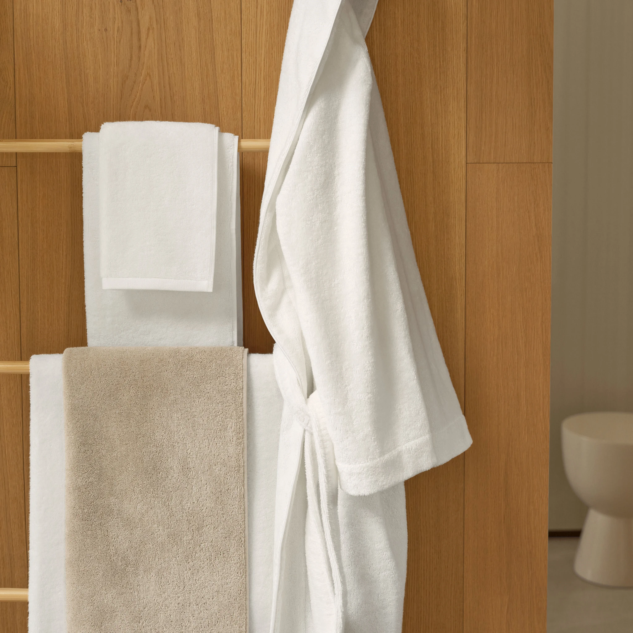 Mit dem COSHMERE GOTS Frottier hat Schlossberg ein luxuriöses Handtuchprogramm geschaffen, das Ihr Badezimmer in eine Wohlfühloase verwandelt. Ob nach der Dusche, dem entspannenden Bad oder beim täglichen Händewaschen – jedes Stück überzeugt durch seine samtweiche Oberfläche und eine beeindruckende Aufnahmefähigkeit. Die fein gearbeiteten Frottierschlingen auf beiden Seiten verleihen dem Stoff eine besondere Geschmeidigkeit und machen jede Berührung zum Genuss. In zwölf harmonischen Farben und unterschiedlichen Formaten erhältlich, lässt sich das Frottier vielseitig kombinieren und passt sich jedem Einrichtungsstil an. Gefertigt aus 100% Bio-Baumwolle und mit dem GOTS-Zertifikat ausgezeichnet, vereint es höchsten Komfort mit nachhaltiger Verantwortung.