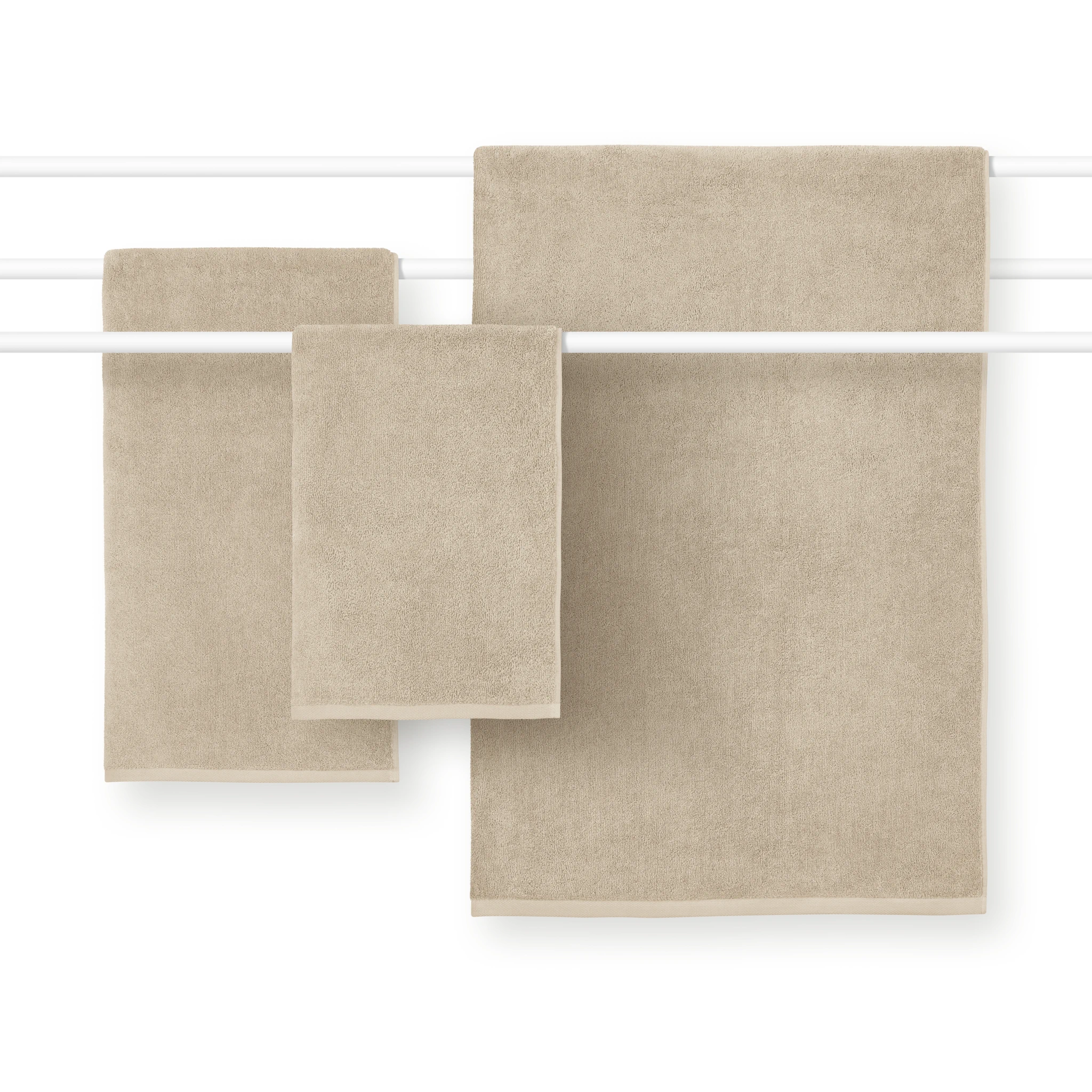 Sand ist ein warmer, heller Beigeton, der Ihrem Badezimmer eine harmonische, beruhigende Atmosphäre verleiht. Das weiche Frottier bietet luxuriösen Komfort, hervorragende Saugkraft und sorgt für ein gemütliches Gefühl nach jeder Dusche oder Badewanne.