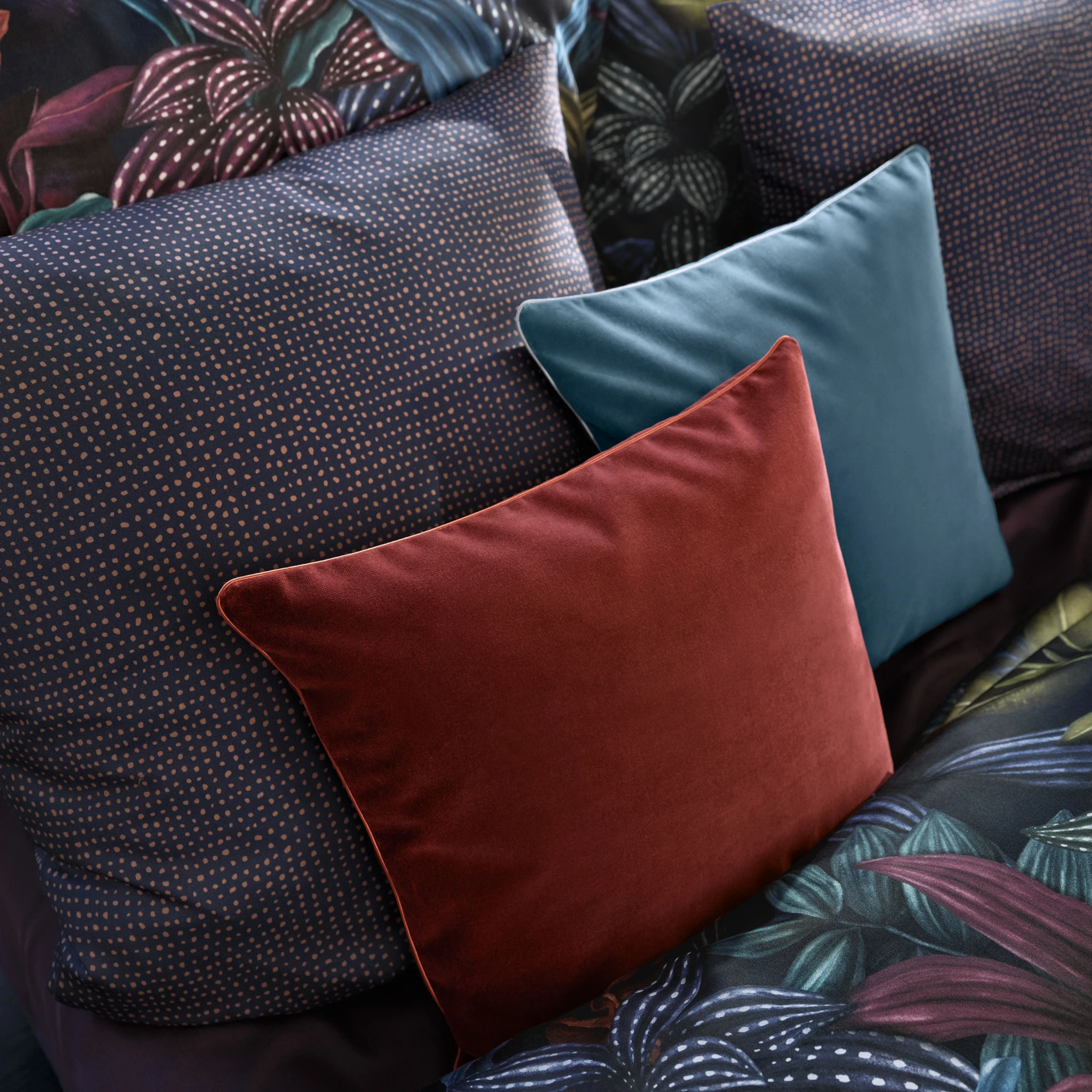 Der samtig-weiche Stoff verleiht den Kissen eine besonders edle Haptik, während die feine Satinpaspel für einen raffinierten, hochwertigen Abschluss sorgt. So werden die Elodie-Dekokissen zum eleganten Blickfang und laden gleichzeitig zum Entspannen und Genießen ein.